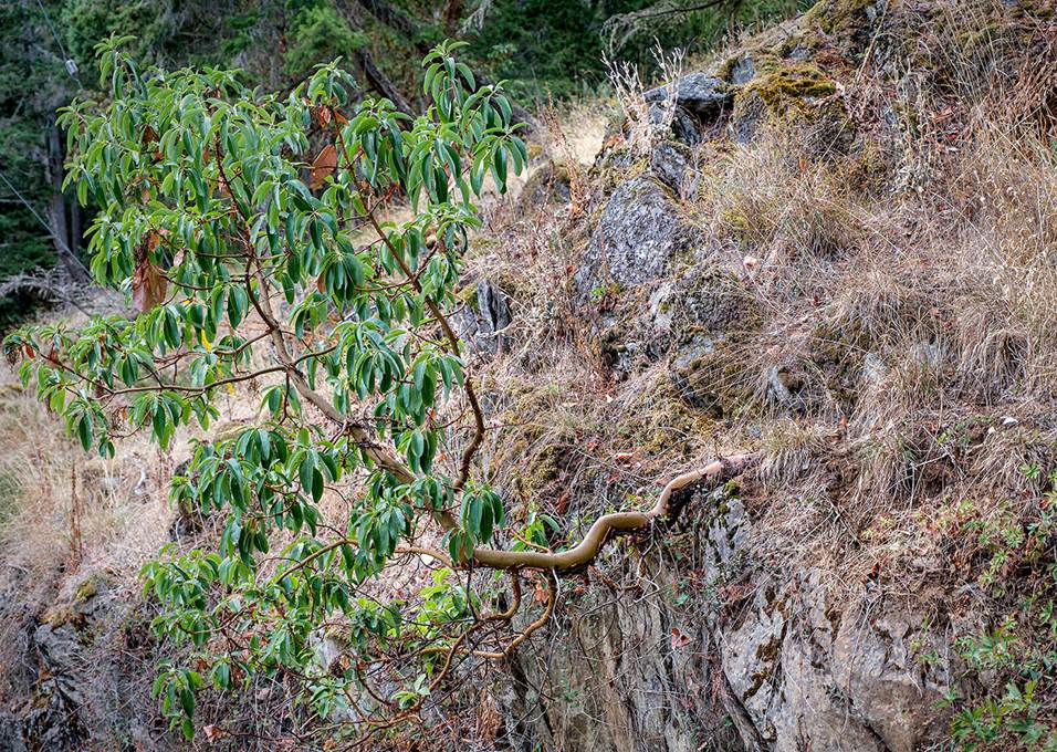 Yet flexibility also carries risks. The branches of a living tree (see photo above) do not necessarily grow evenly around the tree. If all the branches grow on one side, that’s because judicial interpretation consistently favors one ideology, meaning that the tree may lean to the left or lean to the right. Above is my photo of a living tree, an arbutus, that grows out of the rocks near my house. The tree appears to be leaning to the left.  It is actually growing towards the south, for the sunlight. I took this photo from the east side of the tree. Had it been taken from the west side it would have appeared to be leaning to the right. This illustrates an important principle: whether the living tree leans to the left or the right depends on your point of view.